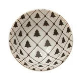6" Round Stoneware Plate with Tree Pattern, Reactive Glaze, White and Black