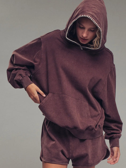 Vintage Wash Crocheted Edge Hooded Sweatshirt