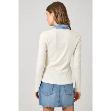 Contrast Collared Cable Knit Sweater