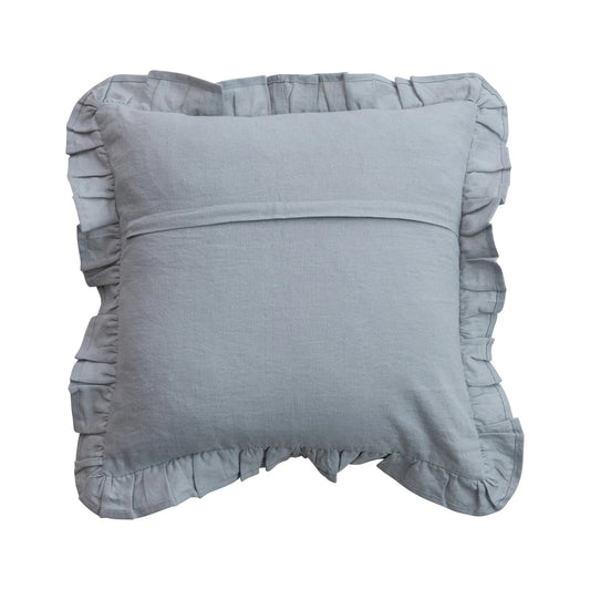 20" Square Cotton Slub Embroidered Pillow w/ Trees & French Knots