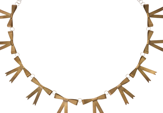 Metal Heart Shaped Bell Garland with Jute Cord, Gold Finish