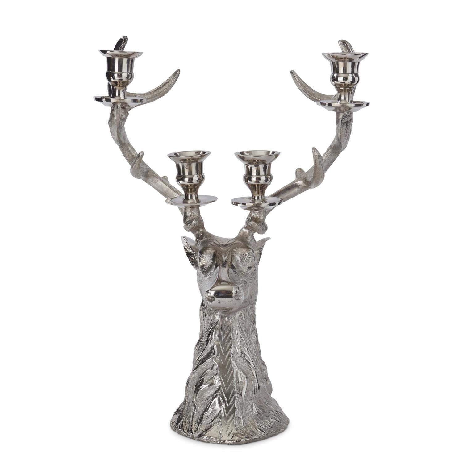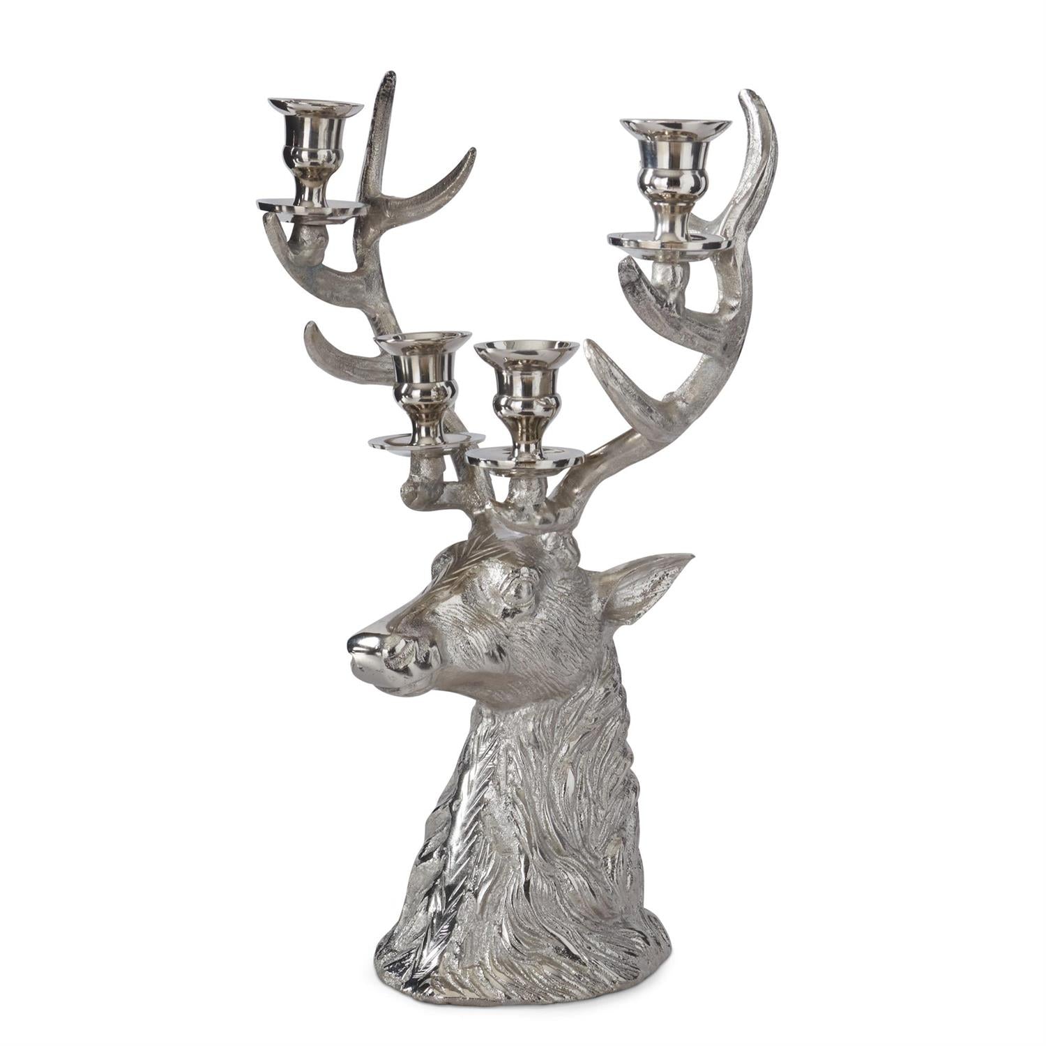 16" Silver Deer Bust Candelabra