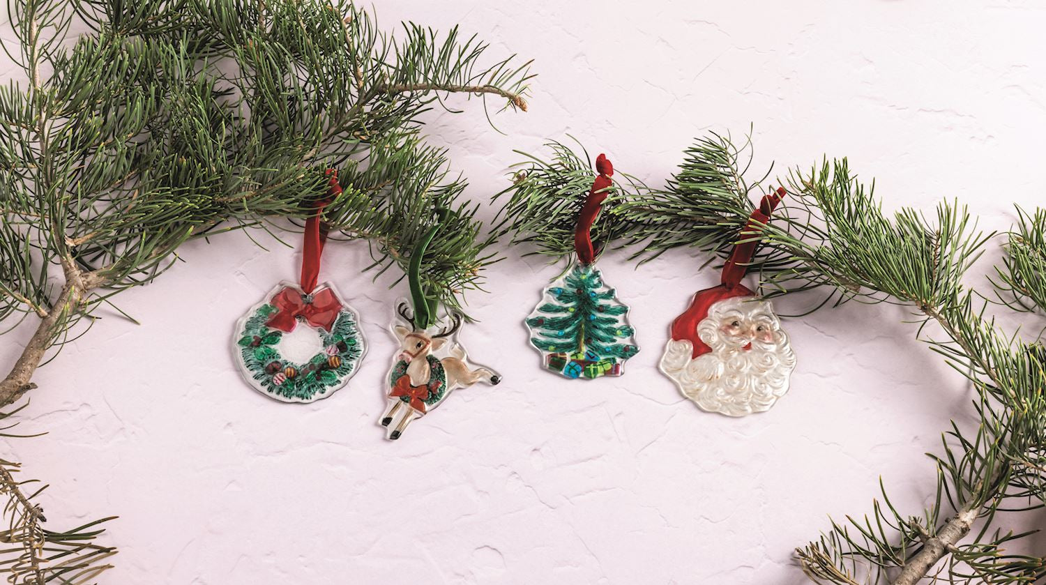 Hand-painted glass ornament with velvet hanger 4 1/4 x 3 1/4