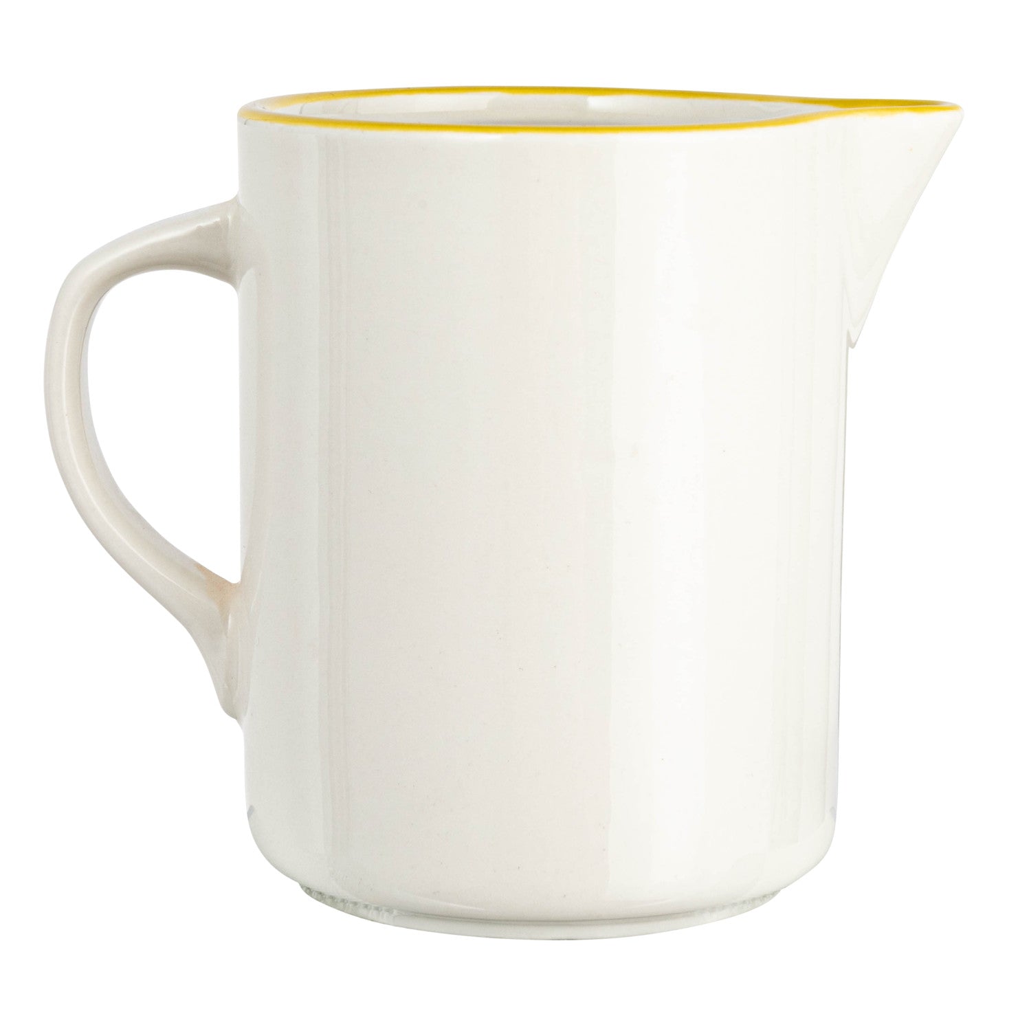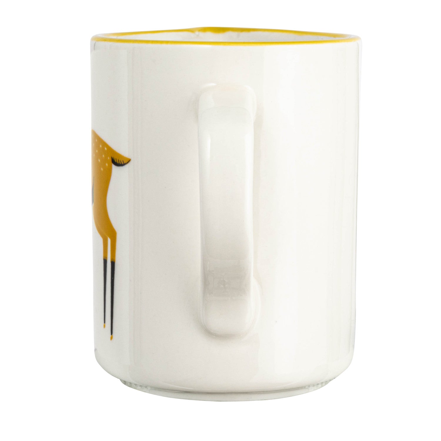 4-1/2'L x 3"W x 3-3/4"H 12 oz. Stoneware Creamer w/ Deer & Yellow Rim